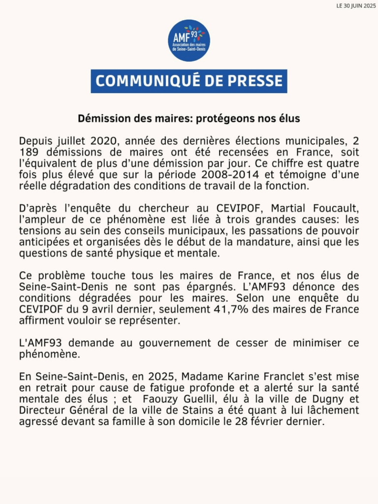 L’AMF93 rend hommage à Daniel Le Danois L’Association des maires de France – Seine‑Saint‑Denis (AMF93) a appris avec une profonde...