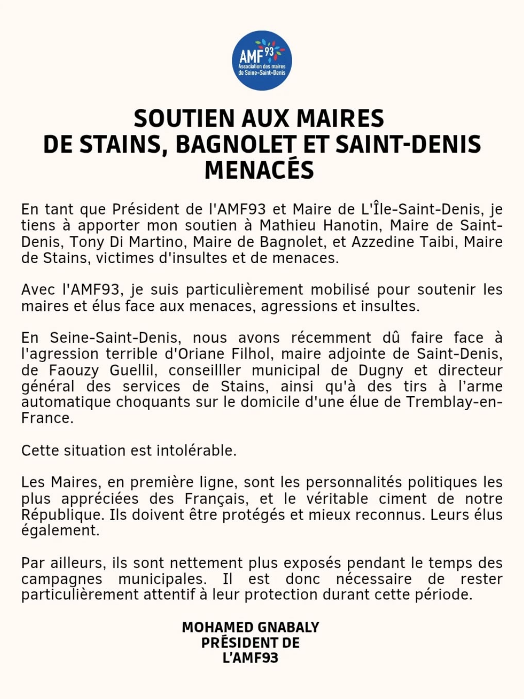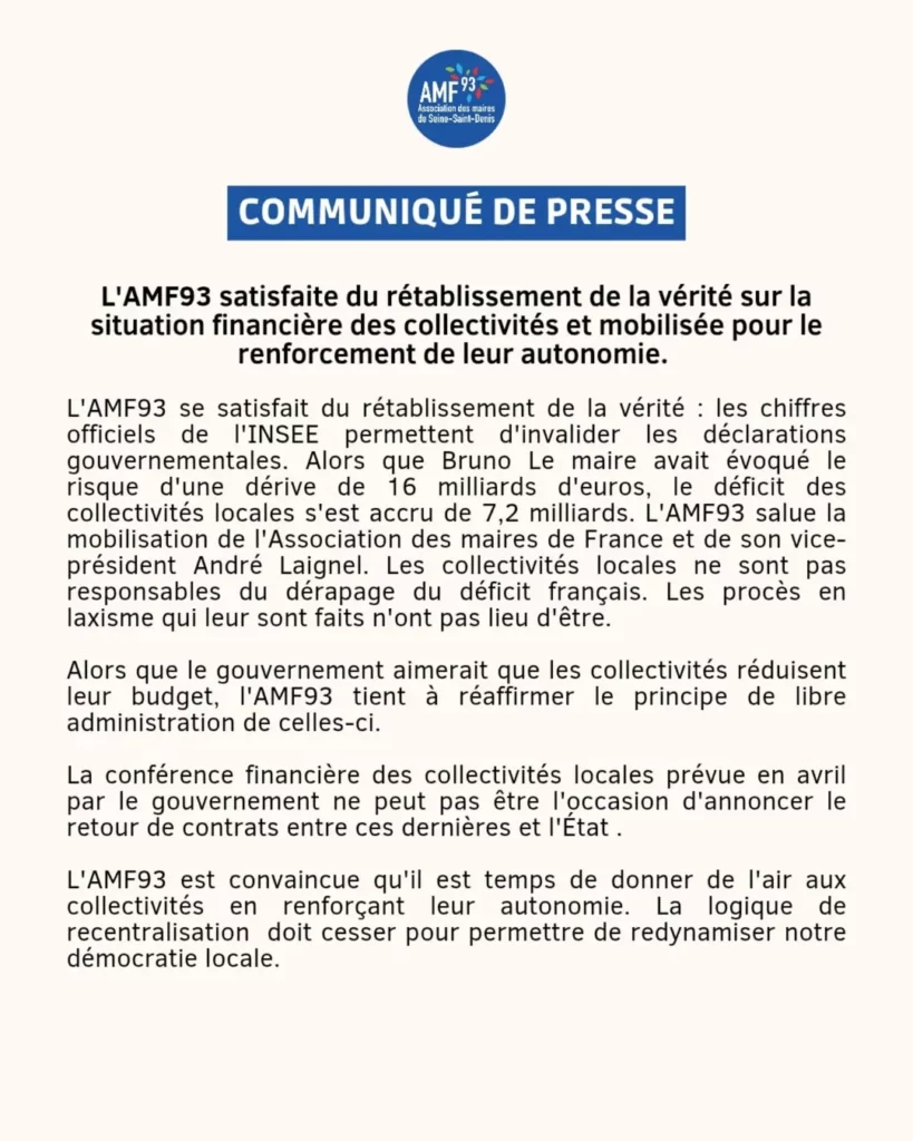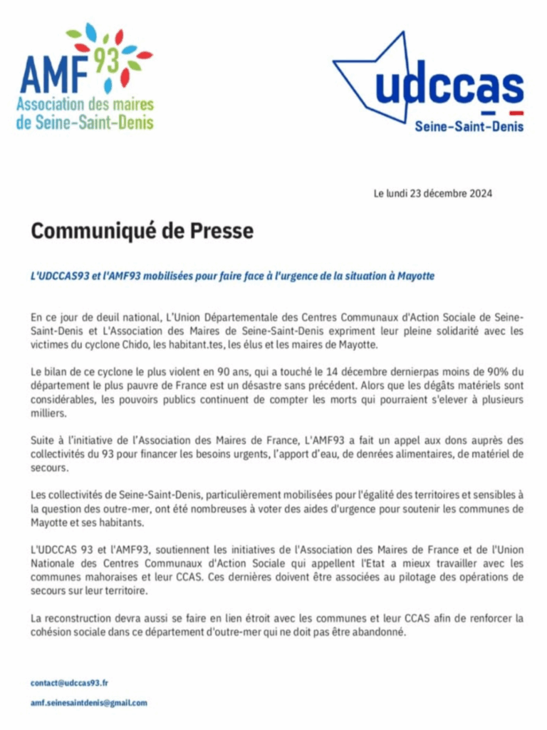 L’AMF93 rend hommage à Zaïnaba Saïd-Anzum L’Association des maires de Seine‑Saint‑Denis (AMF93) a appris avec une profonde tristesse le décès...